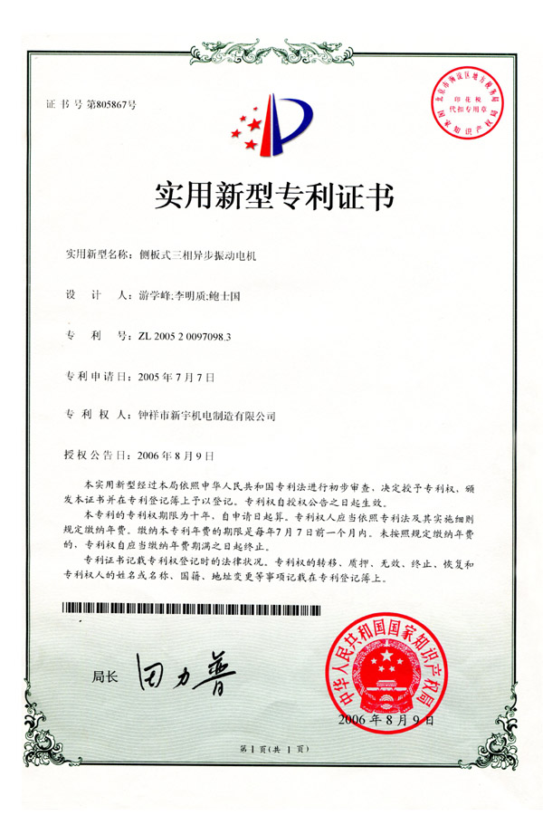 鐘祥新宇機(jī)電制造股份有限公司——中國(guó)大型振動(dòng)電機(jī)生產(chǎn)基地!聯(lián)系人:宋文耀(經(jīng)理)電話(huà):0724-4231097 13607265083