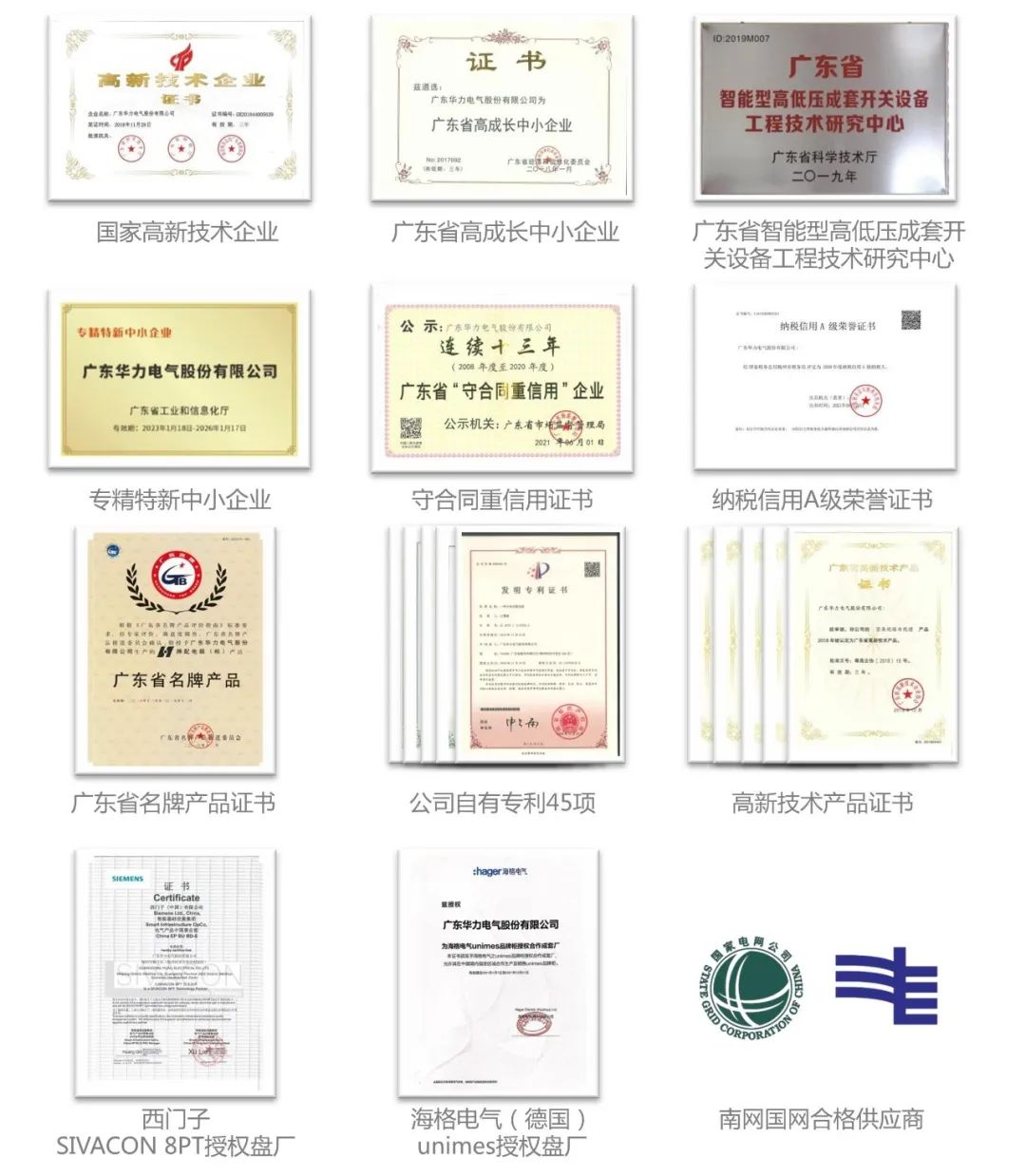 經過19年的發展,華力電氣生產的設備已經廣泛應用于大型工礦企業、電網系統、市政建設、交通等諸多領域,在行業龍頭企業和重大工程項目中積累了豐富的電力技術和可靠的運行業績。已成為了“國家電網及南方電網合格供應商”、世界著名電氣行業品牌德國西門子授權柜廠、德國海格電氣授權柜廠。